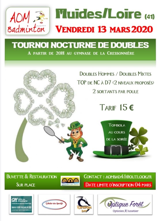 Nous organisons la 3 ème édition du tournoi Nocturne de doubles le vendredi 13 mars 2020.